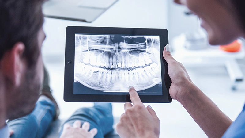 تبدأ رحلة التغيير بفحص شامل باستخدام أحدث تقنيات التصوير مثل الأشعة ثلاثية الأبعاد CBCT، التي تتيح للطبيب رؤية دقيقة للأسنان واللثة والعظام.