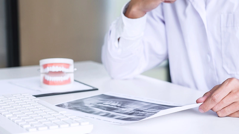 Des images haute résolution telles que les radiographies panoramiques et les scans 3D (CT) sont incluses pour évaluer la densité osseuse, la position des racines, la structure des sinus et l’état général de la cavité buccale. Ces outils diagnostiques garantissent un placement précis des implants et une planification chirurgicale sécurisée.