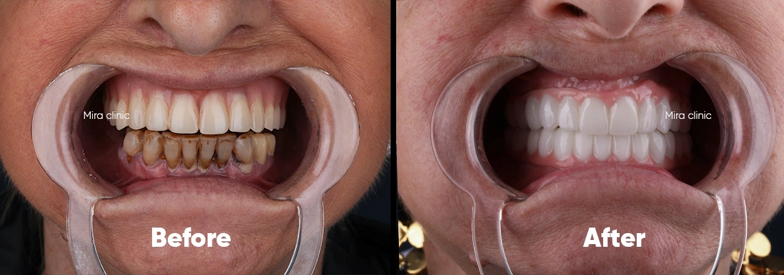 في عيادة ميرا، يختار المرضى من مختلف أنحاء العالم فريقنا بفضل استخدام المواد عالية الجودة وتقنية تصميم الابتسامة الرقمية (Digital Smile Design)، بالإضافة إلى الباقات الشاملة التي تتضمن العلاج والإقامة والرعاية الشخصية. النتيجة هي ابتسامة مشرقة وطويلة الأمد تعزز من المظهر والثقة بالنفس.